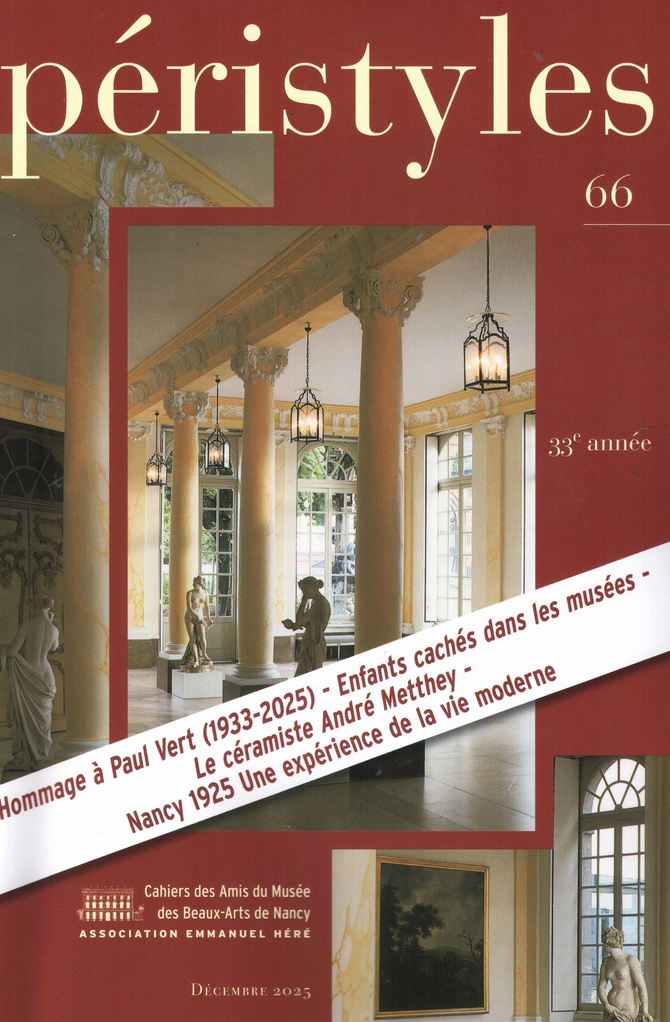 Péristyles est la revue publiée par la Société des Amis du Musée des Beaux-Arts de Nancy – Association Emmanuel Héré. Gratuite pour les Amis du Musée, elle peut également être achetée au numéro (10 €) ou en numéro double (20 €).